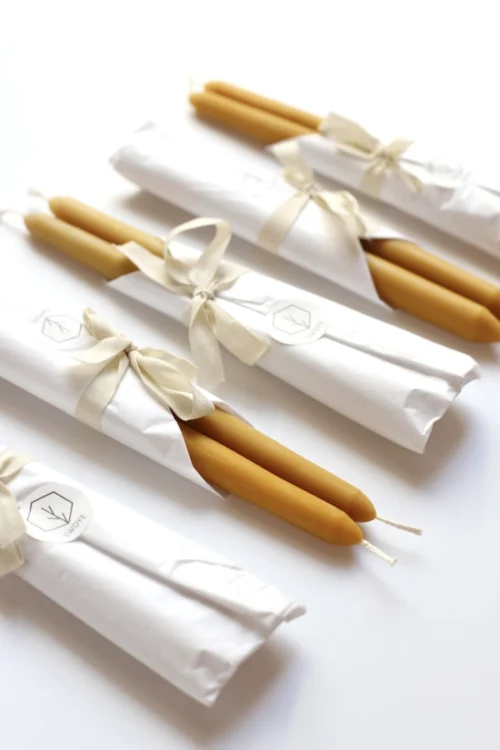 Kolor świec ma naturalną barwę, w odcieniach żółtego. Nie używamy barwników.