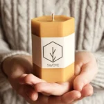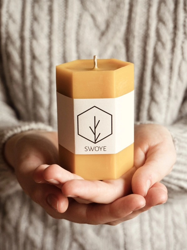 Zamknięty w niej słodki zapach propolisu i złoty odcień wosku tworzą unikalną świecę.