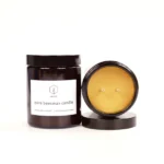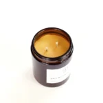 W złotym wosku zostały zatopione dwa bawełniane knoty a słodko orzeźwiający aromat precyzyjnie zamknięty w słoju z ciemnego szkła.