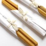 Świeca wykonana w 100% z wosku pszczelego z bawełnianym knotem. Świece stołowe sprzedawane są w zestawie dwóch sztuk cena podana za zestaw. Odcień świec zależy od koloru wosku może być jaśniejszy lub ciemniejszy.