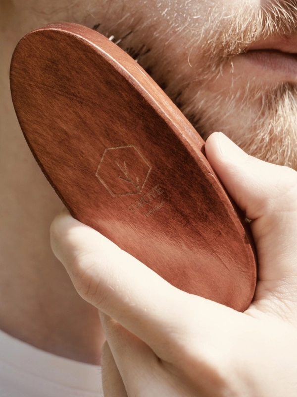 Szczotka zapewnia porządny masaż skóry poprawiając krążenie i złuszczając martwy naskórek. Rozczesuje nawet najbardziej splątaną brodę i wąsy. Mocniejszy nacisk szczotki do skóry przyniesie intensywniejsze doznania masażu.