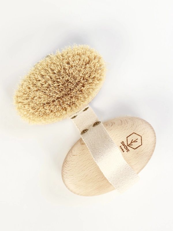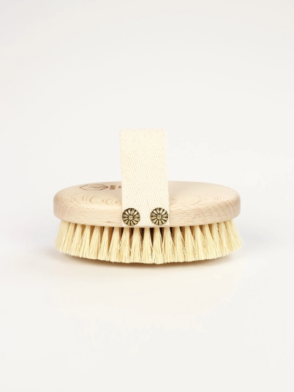Organiczna szczotka do masażu ciała na sucho. Wykonana z wysokiej jakości drewna bukowego oraz z naturalnego włókna agawy.