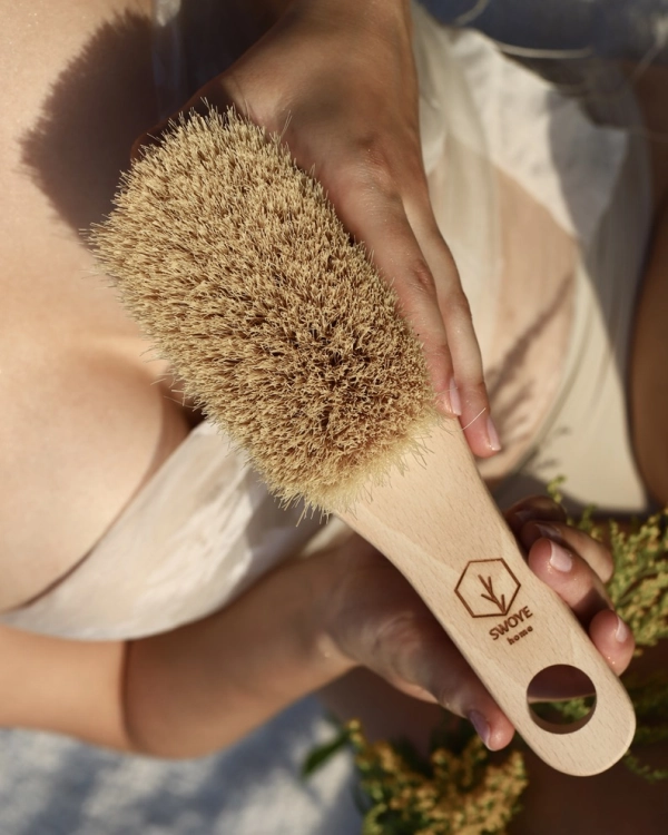 Organiczna szczotka do masażu ciała na sucho. Wykonana z wysokiej jakości drewna bukowego oraz z naturalnego włókna agawy.