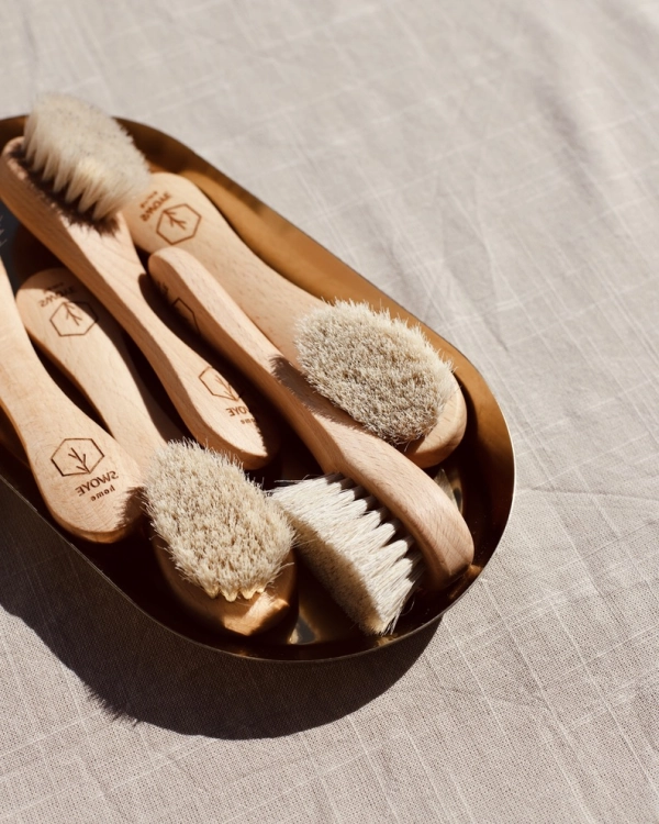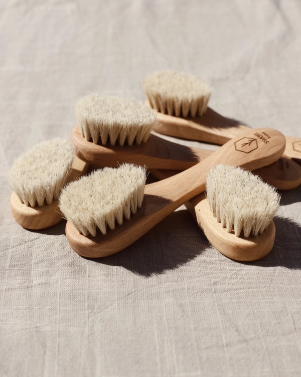 Organiczna szczotka do masażu twarzy na sucho. Wykonana wyselekcjonowanego włosia końskiego oraz z wysokiej jakości drewna bukowego.